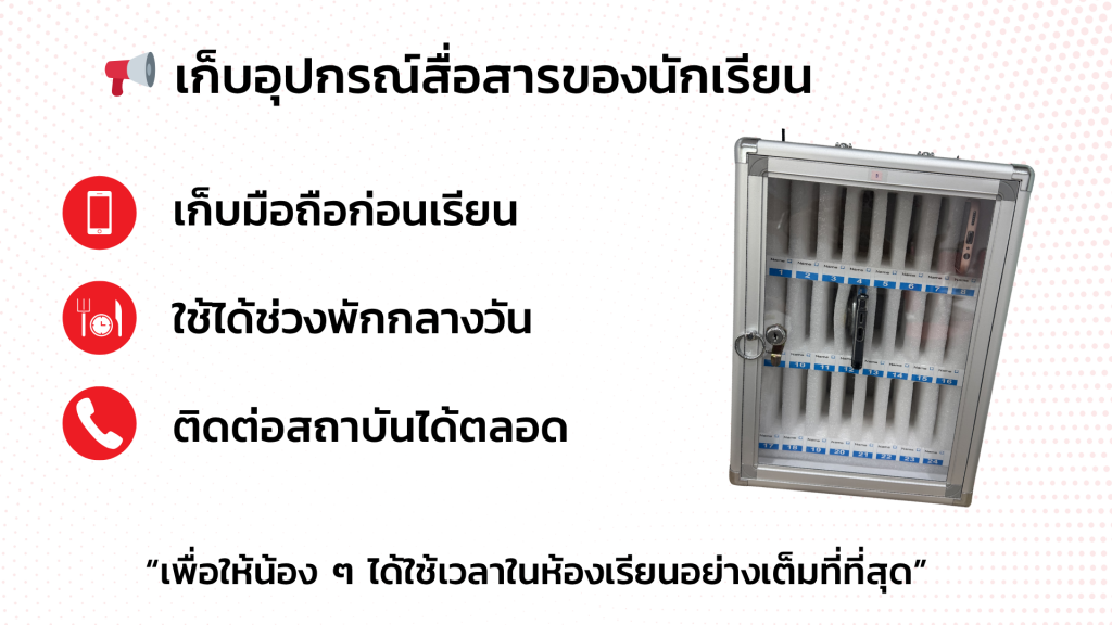 โดยน้อง ๆ จะฝากโทรศัพท์ไว้กับทางสถาบันก่อนเริ่มเรียน