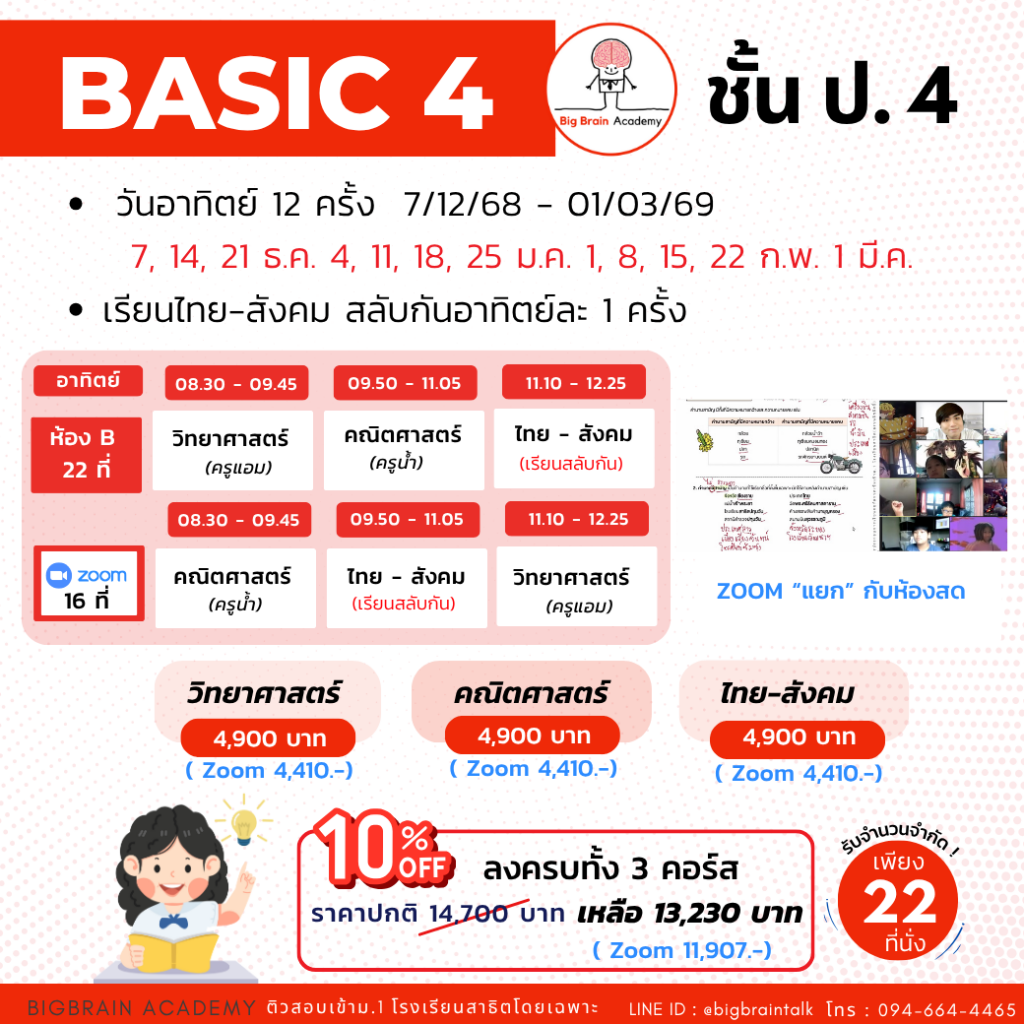 1. ขาด ลา มาสาย เรียนย้อนหลังยังไง คอร์สเรียนสด on-site หรือ zoom ในทุกๆ ครั้ง คุณครูจะมีการบันทึกวิดีโอไว้ทุกครั้งในกรณีน้องๆ ขาดเรียน ลาป่วย ติดธุระด่วน มาสาย หรืออยากทบทวนบทเรียน สามารถเรียนได้ที่ลิงก์เรียนย้อนหลัง ของในแต่ละคอร์ส/วิชาได้ตลอดทั้งคอร์สรวมถึงดูได้ไม่จำกัดอีก 6 เดือนหลังจบคอร์ส คุณครูจะส่งลิงก์เรียนย้อนหลังให้ทางไลน์วันแรกที่เริ่มคลาสเรียน อัพโหลดVideoทุกวันอังคาร 18.00 น. ใช้ Link เดียวตลอดทั้งคอร์ส