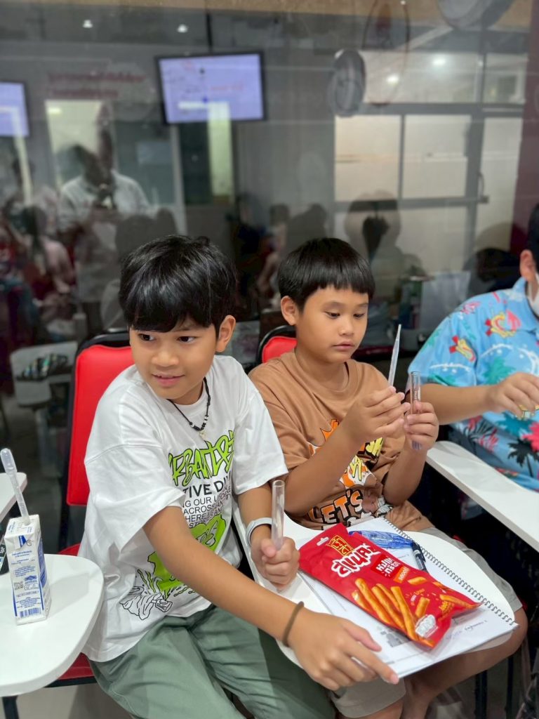 ปิดท้ายด้วยการทดลองวัดมวลและน้ำหนัก ที่ครูแอมอธิบายความแตกต่างระหว่าง “มวล” และ “แรงโน้มถ่วง” เด็ก ๆ ได้ลองใช้ตาชั่งวัดวัตถุต่าง ๆ เทียบกันแบบชัด ๆ พร้อมกิจกรรมชั่งของจริง ลุ้นกันว่าวัตถุที่ดูเบาจะหนักแค่ไหนกันแน่