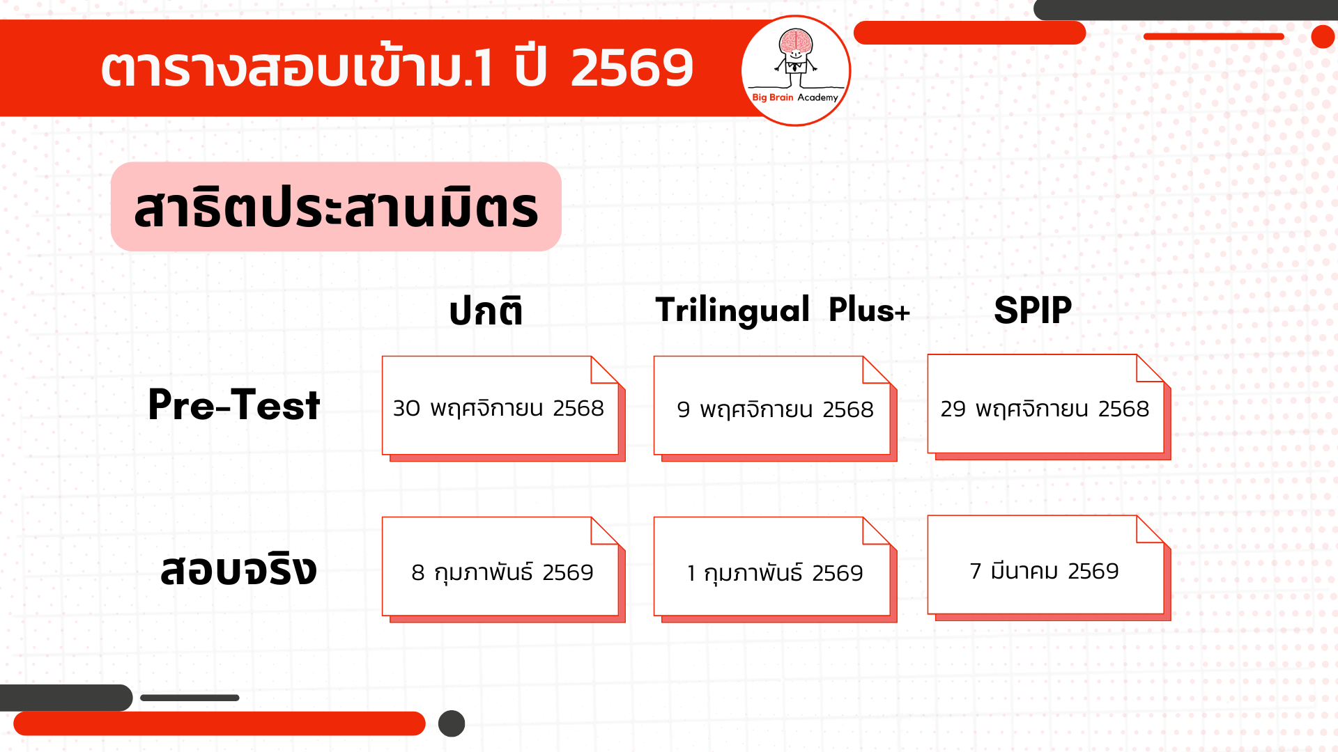 สำหรับน้องๆ ป.4 – ป.6 คนไหนที่มีเป้าหมายสอบเข้า สาธิตประสานมิตร ในปีการศึกษา 2569 ต้องไม่พลาด! พี่บิ๊กเบรน รวม วันสอบ Pre-Test และ วันสอบจริง ตามประกาศจาก Website โรงเรียนสาธิตประสานมิตรไว้ให้เรียบร้อยแล้ว 📌